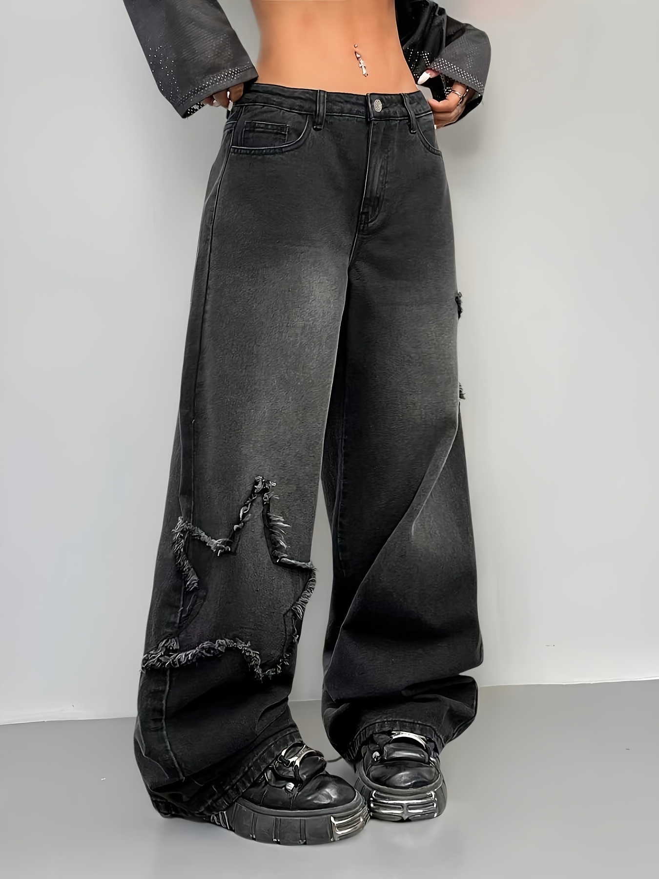Step into effortless streetwear style with these women’s vintage distressed wide-leg jeans.