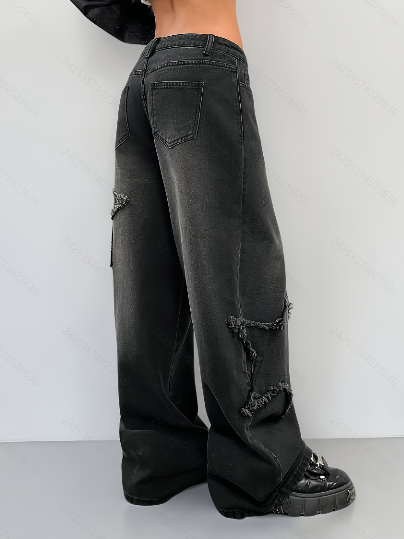 Retro Design: Washed black distressed look with wide-leg silhouette.